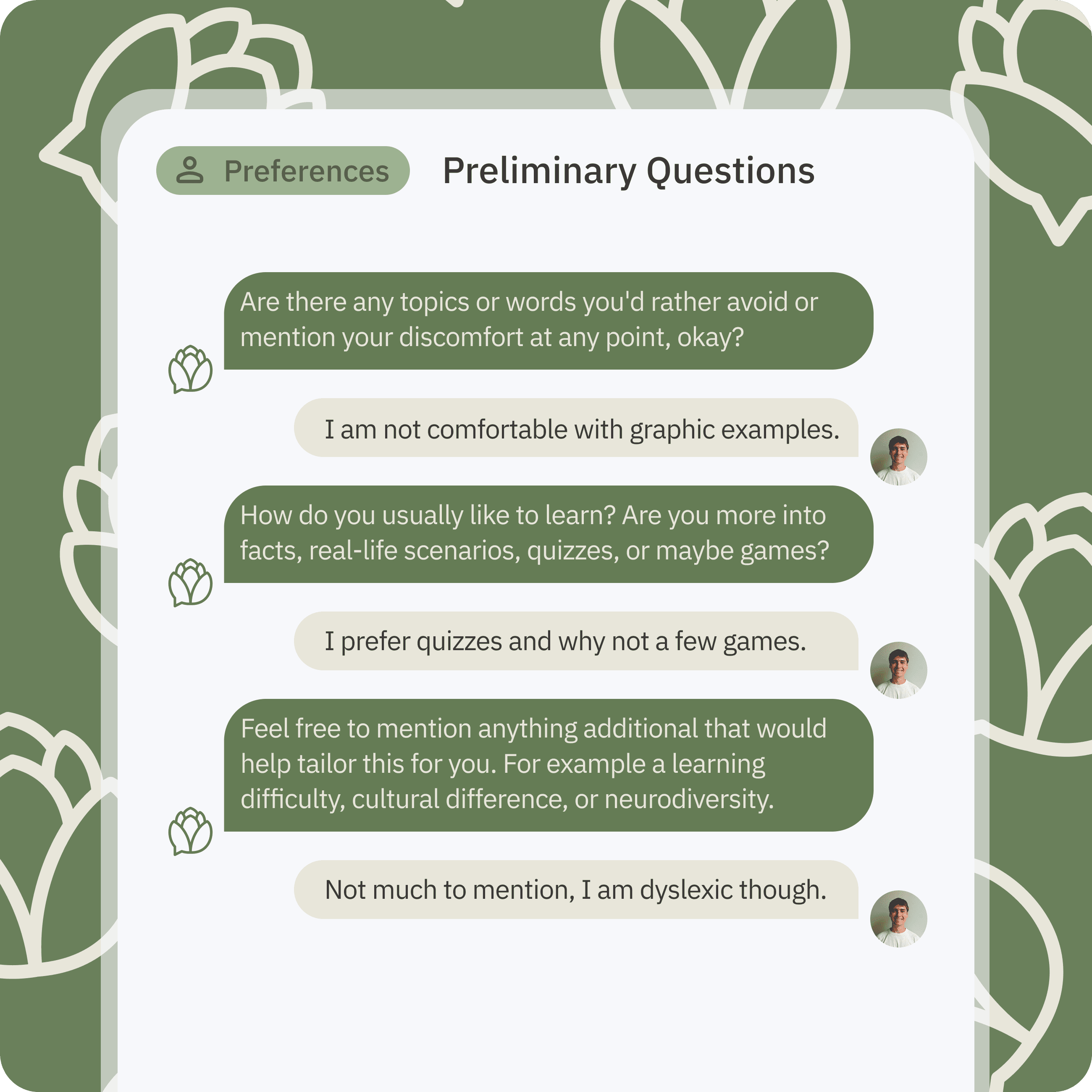 Arti uses the user’s preferences to create a personalised and adaptive course plan.